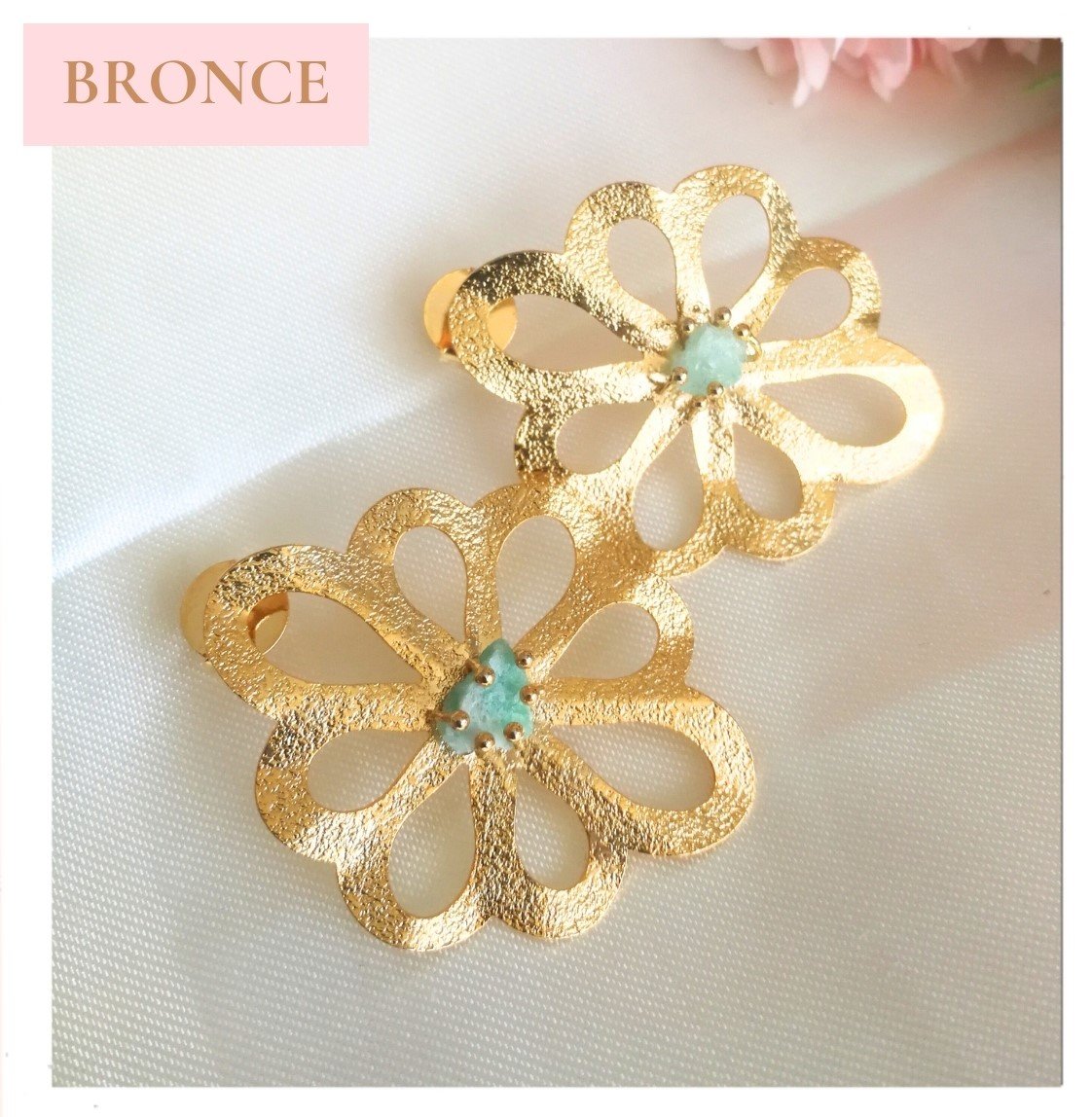 ARETES EN FORMA DE FLOR DORADOS  EN BRONCE