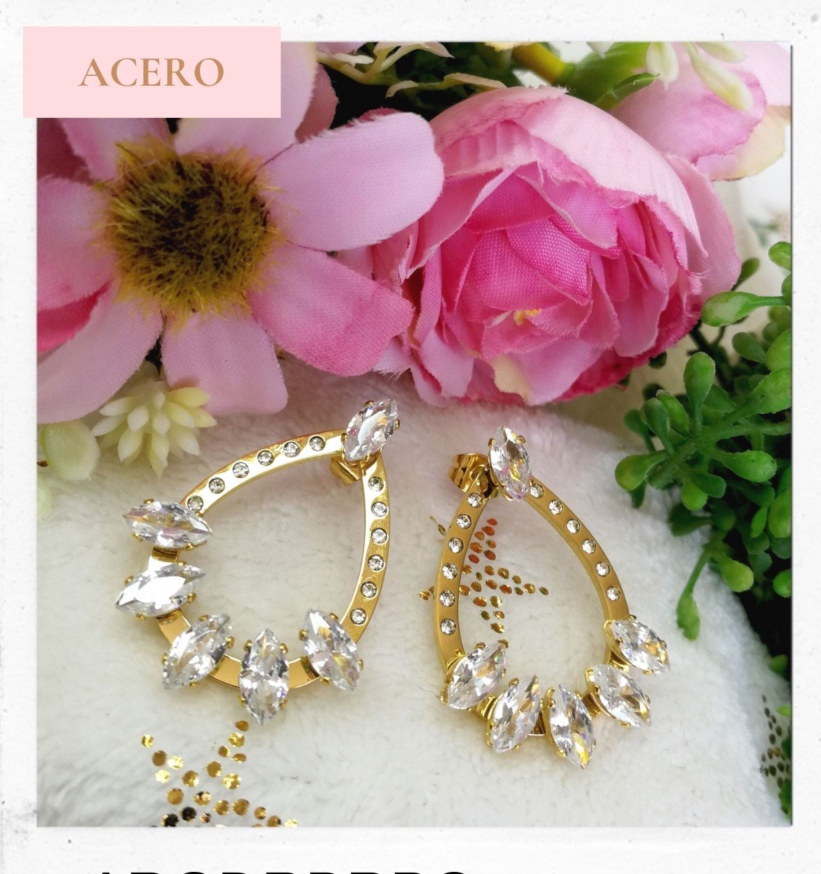 ARETES DSORADO CON PIEDRAS EN ACERO