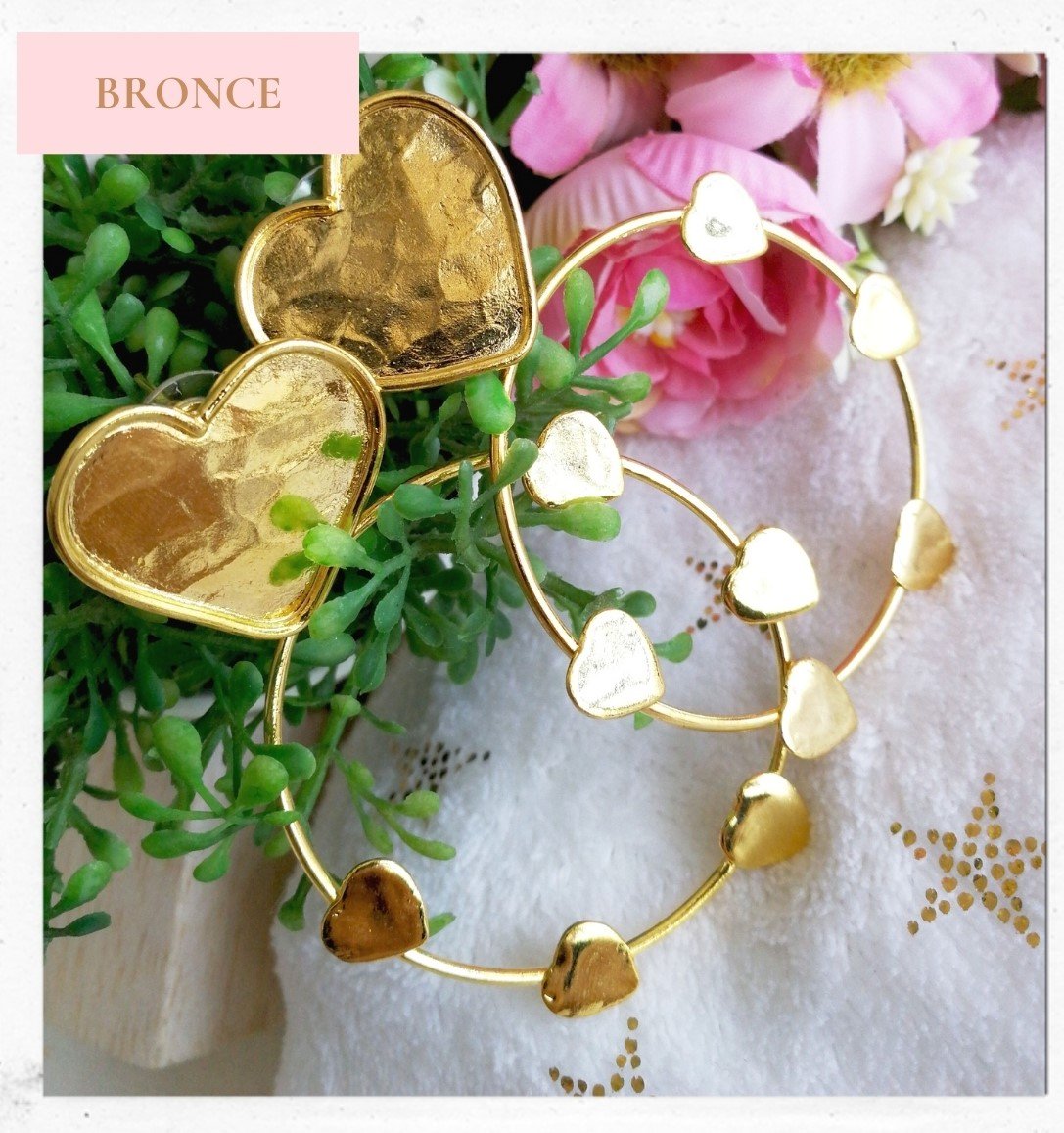 ARETES DORADOS CON CORAZONES EN ACERO