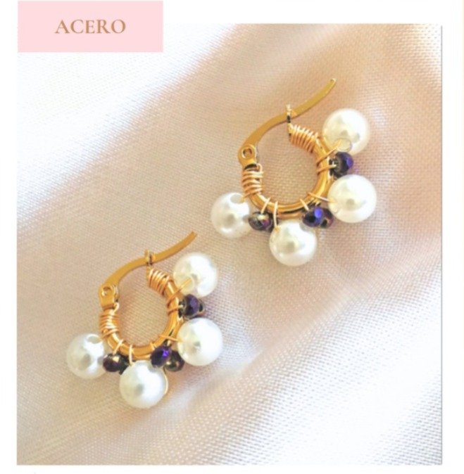 ARGOLLAS PEQUEÑAS CON PERLAS BLANC Y AZULES EN ACERO