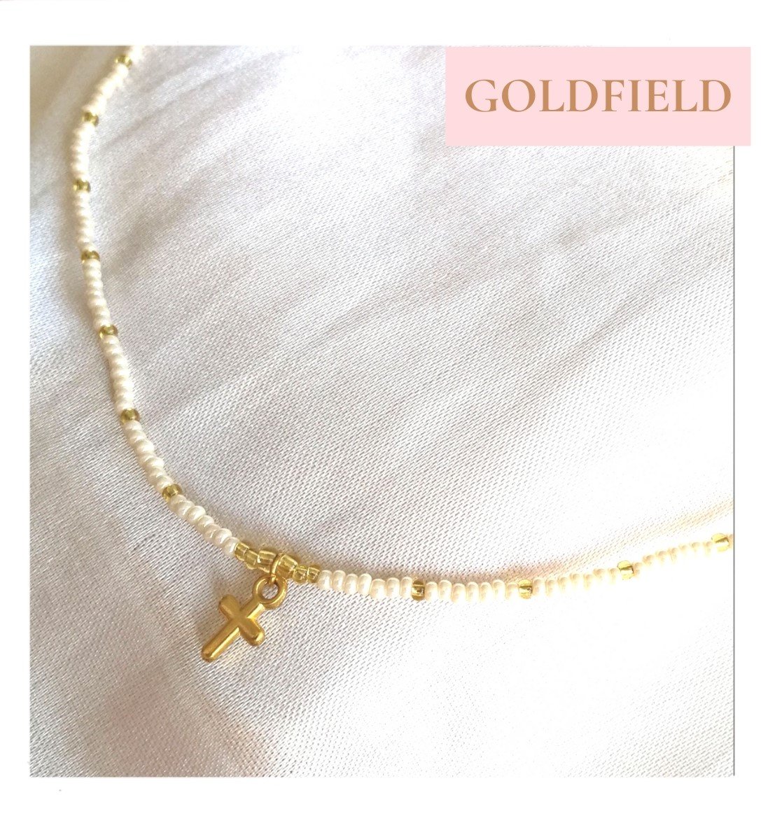GARGANTILLA CON PIEDRAS BLANCAS Y DORADAS MAS DIJE DE CRUZ GOLDFIELD