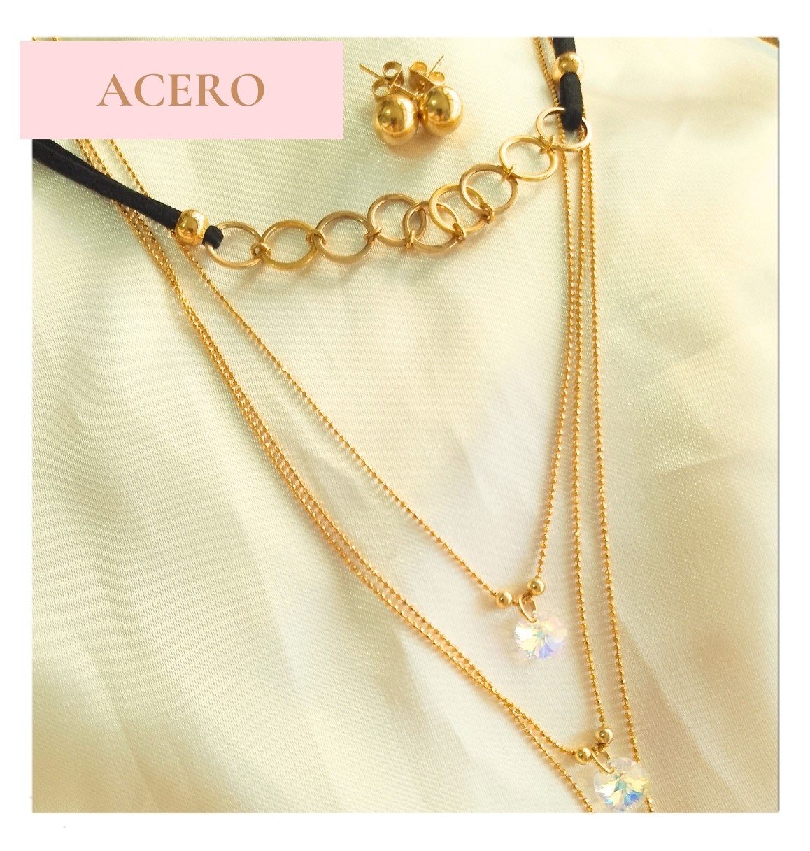 JUEGO DE ARESTES Y COLLAR DORADO EN ACERO