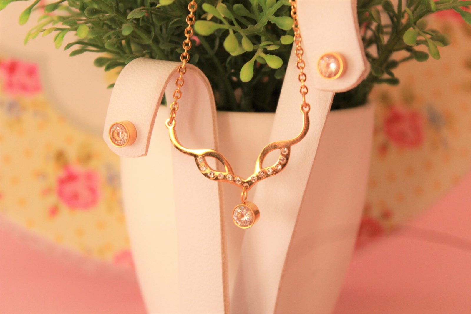 JUEGO DE ARETES Y COLLAR DORADO EM ACERO