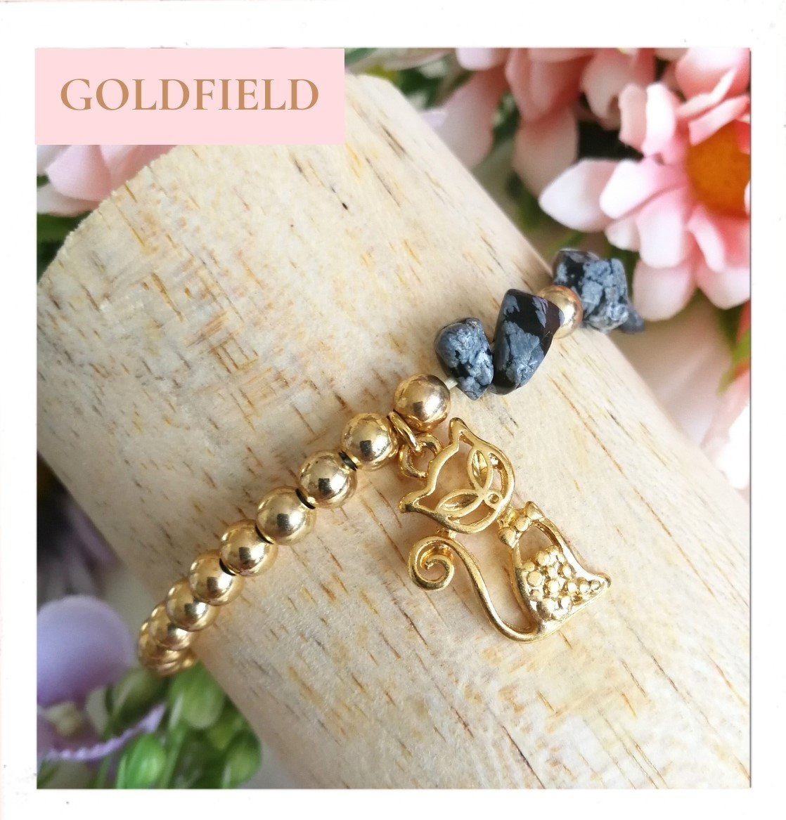 PULCERA DORADA DE BOLITAS Y PIEDRAS GRISES GOLDFIELD