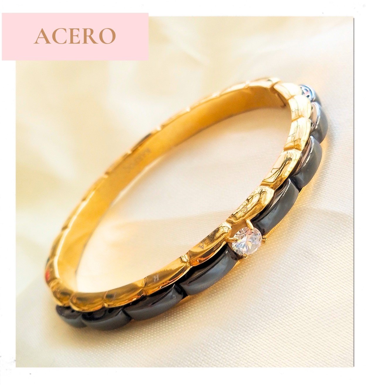 PULCERA DORADA CON PIEDRAS NEGRAS EN ACERO
