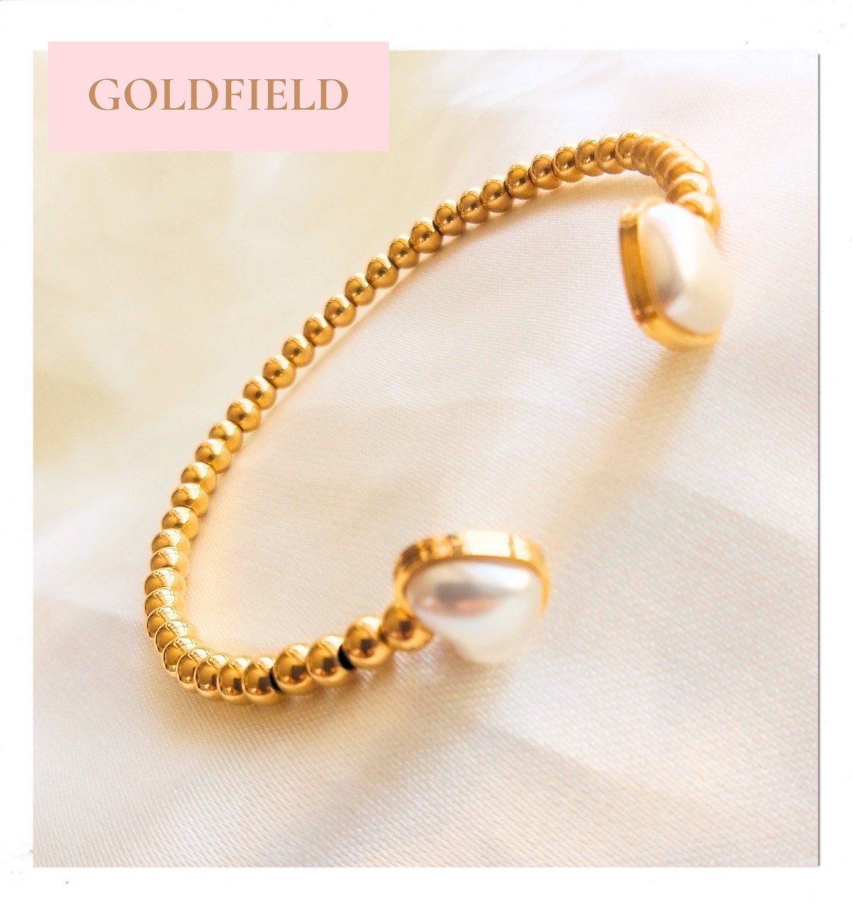 PULCEA DE PERLAS DORADAS CON DIJE DE CORAZON BLANO GOLDFIELD
