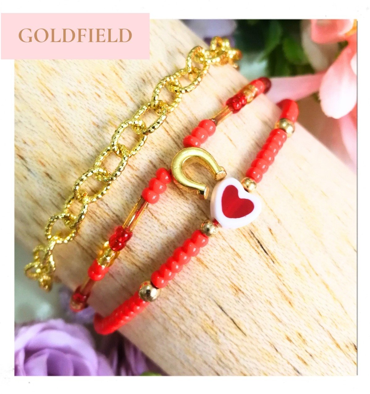 MANILLA DE HILO Y MOSTASILLAS ROJA Y DORADA GOLDFIELD