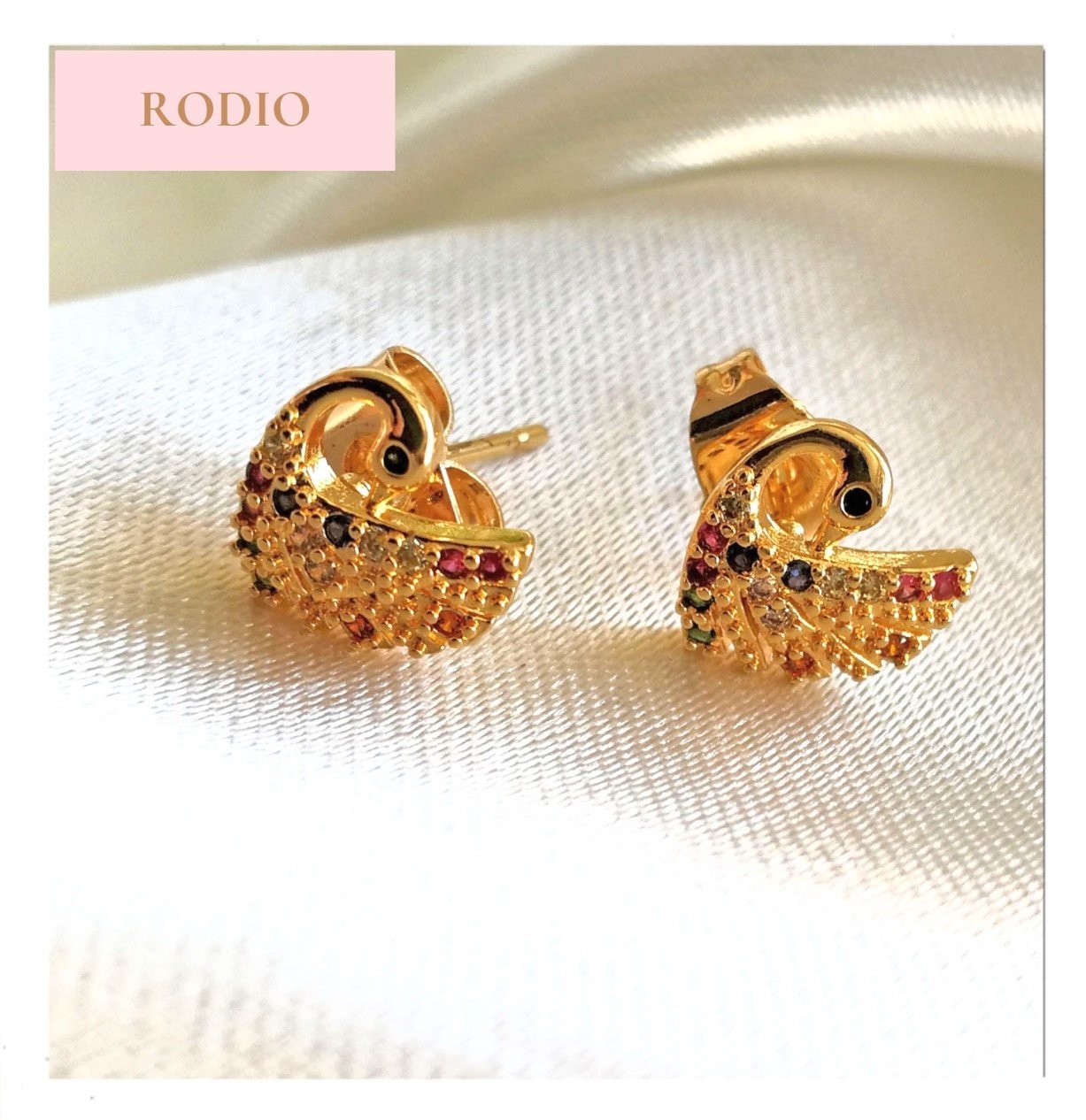 TOPITOS CISNE DORADO CON DERTALLES DE COLORES EN RODIO